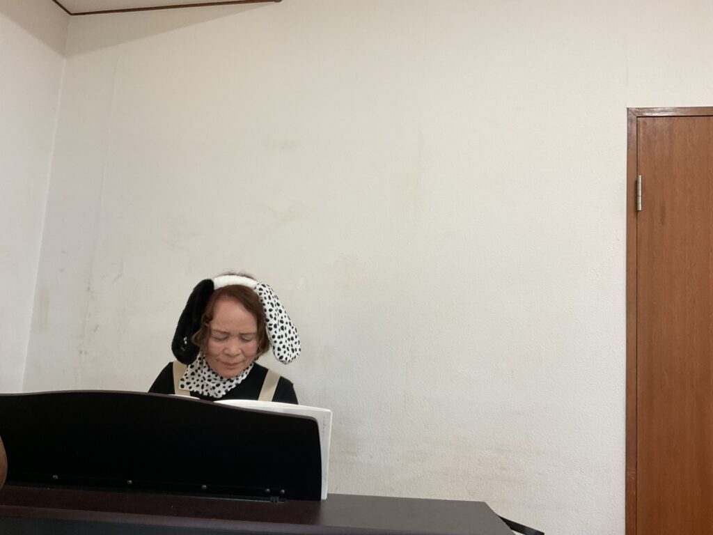 カフェのスタッフ、山田さんによるピアノの生の伴奏つきです。