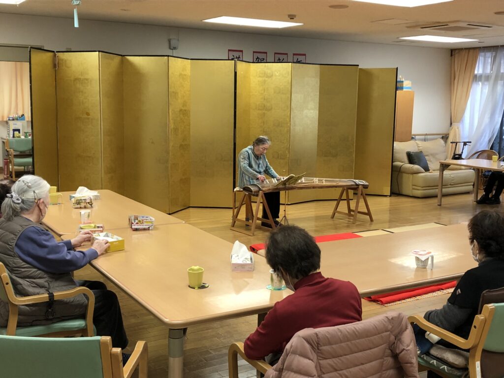 新年あけあしておめでとうございます。本日デイサービスで初釜を行いました。お茶は職員が裏千家のお作法に基づいて振舞っていただきました。さらにデイサービスご利用のお客様による、お琴の生演奏もご披露いただき、初釜に華を添えていただきました。