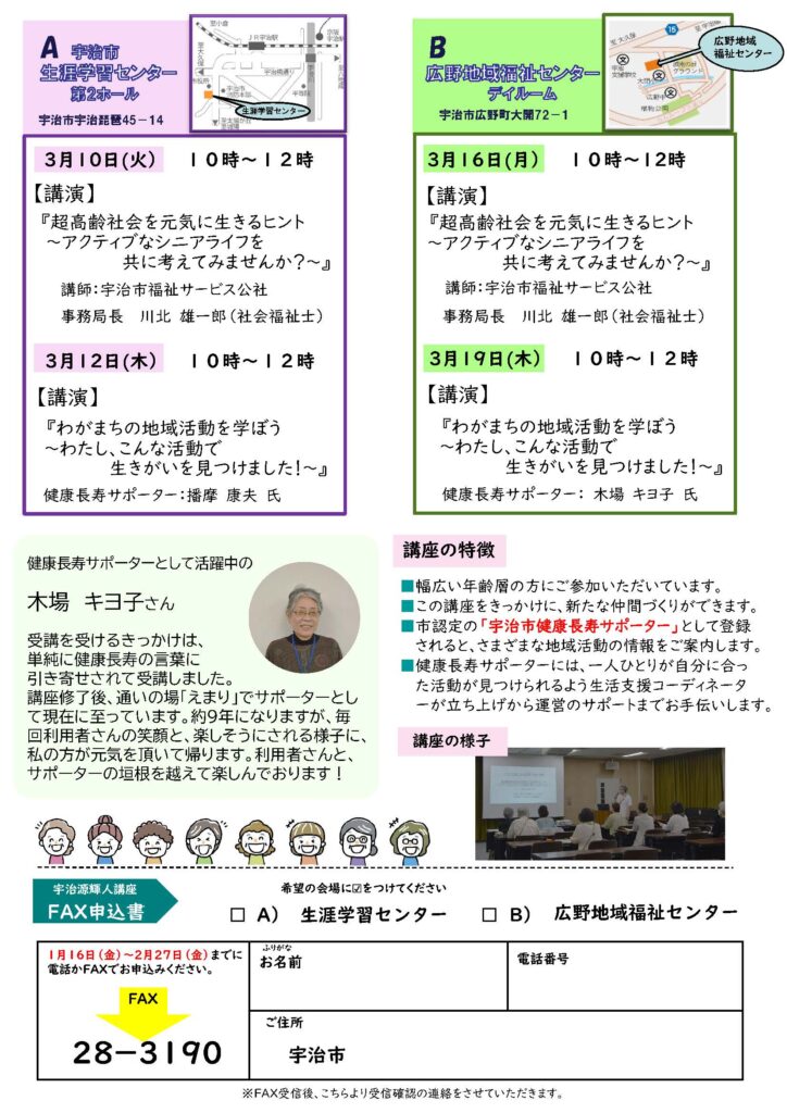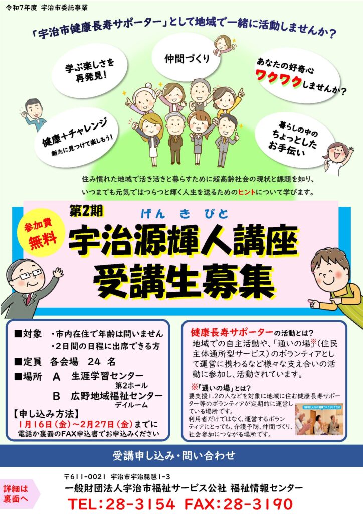 第2期宇治源輝人(げんきびと)講座を開催します。